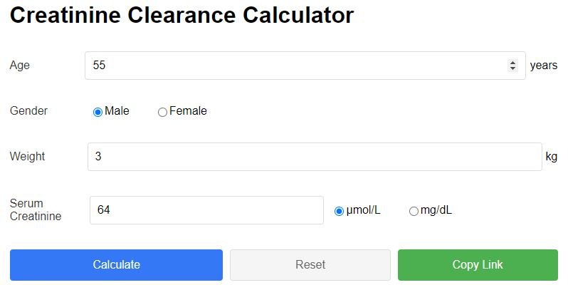 This calculator is primarily designed for adults; assessing creatinine clearance in children may require different methods.